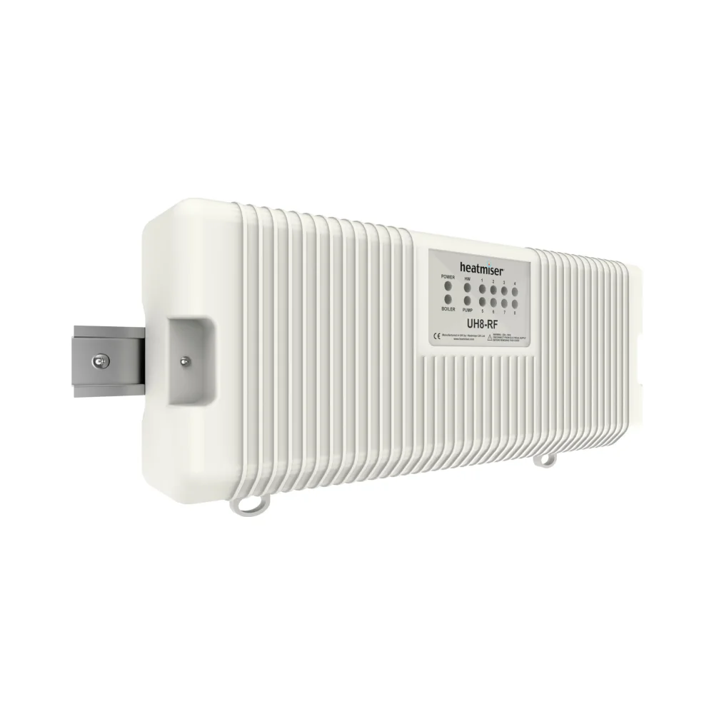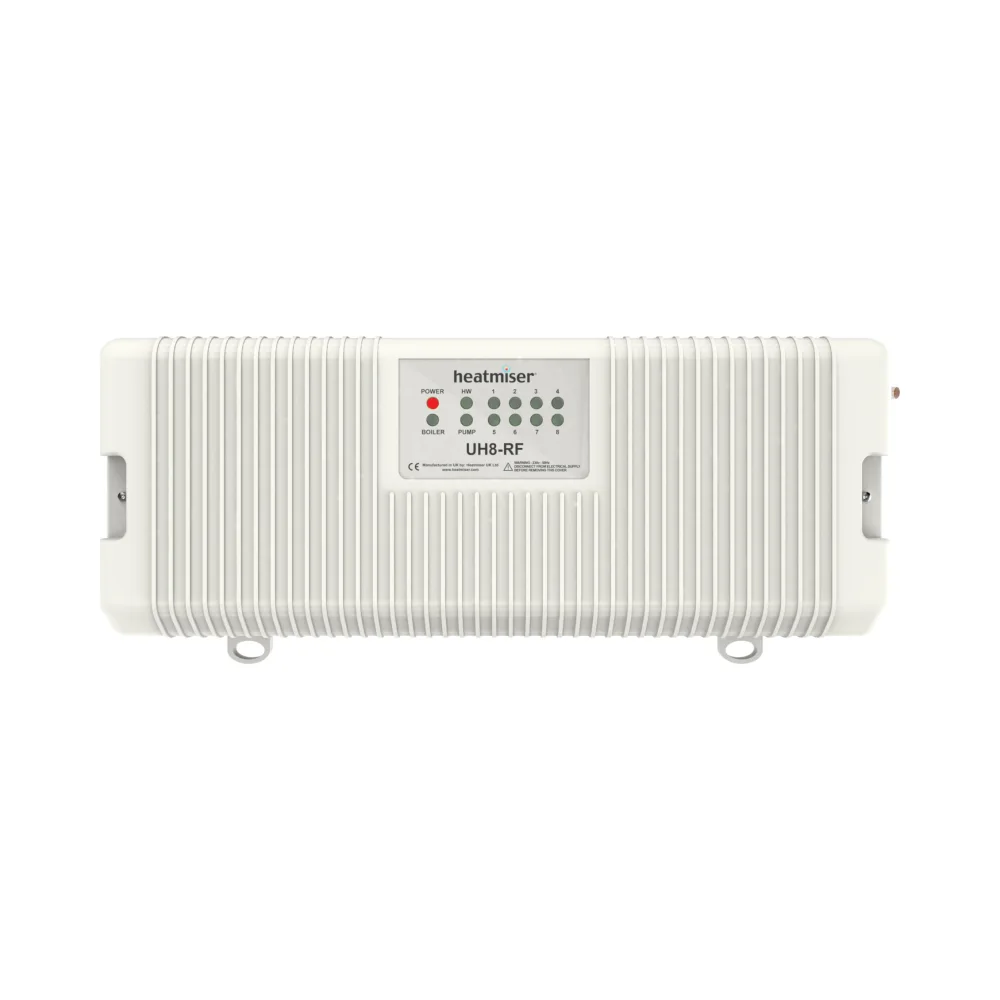 The Heatmiser UH8-RF is our 8 Zone wireless wiring centre designed to work with our Slimline-RF and neoAir Thermostats.