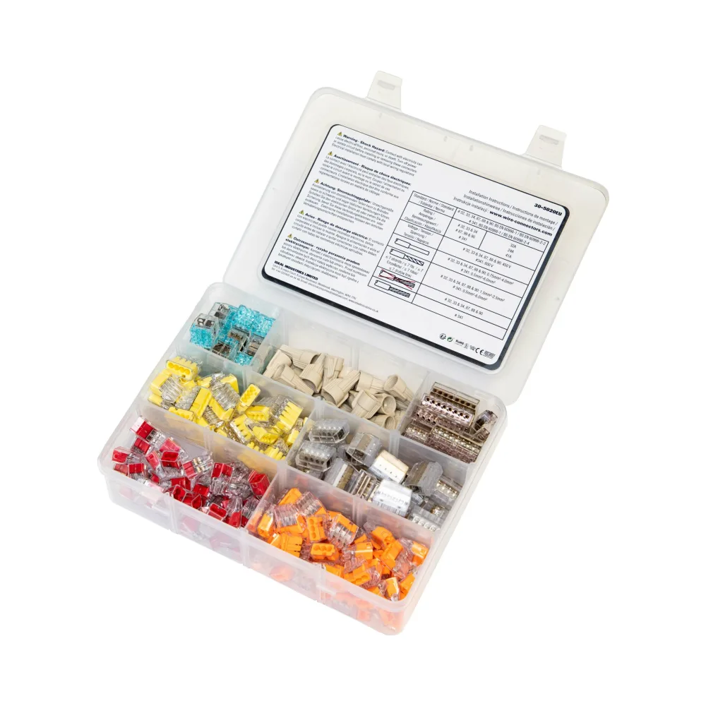 The IDEAL 30-5020EU In-Sure Push-In Wire Connector Premium Kit offers a comprehensive 255-piece selection designed to simplify electrical installations. These connectors reduce installation time by up to 50% compared to traditional terminal blocks, providing the fastest and easiest push-in connection solution on the market. Ideal for residential, commercial, and industrial applications, this kit ensures secure and efficient wiring with high-quality connectors.