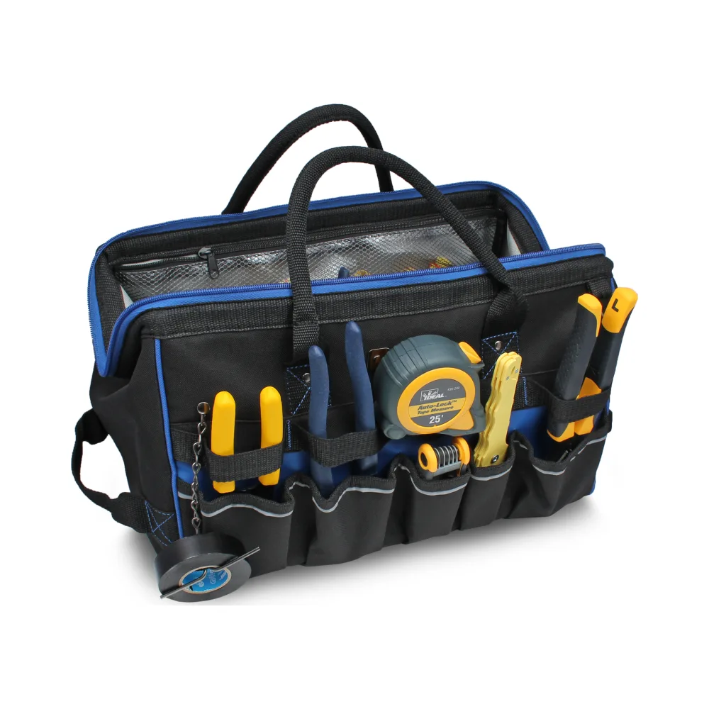 The IDEAL® Pro Series Large Mouth Bags feature a sturdy design that opens completely for ease of access to tools and equipment. Multiple interior and exterior pockets including a protective phone/sunglasses case allow you to store and carry what you need for every job.