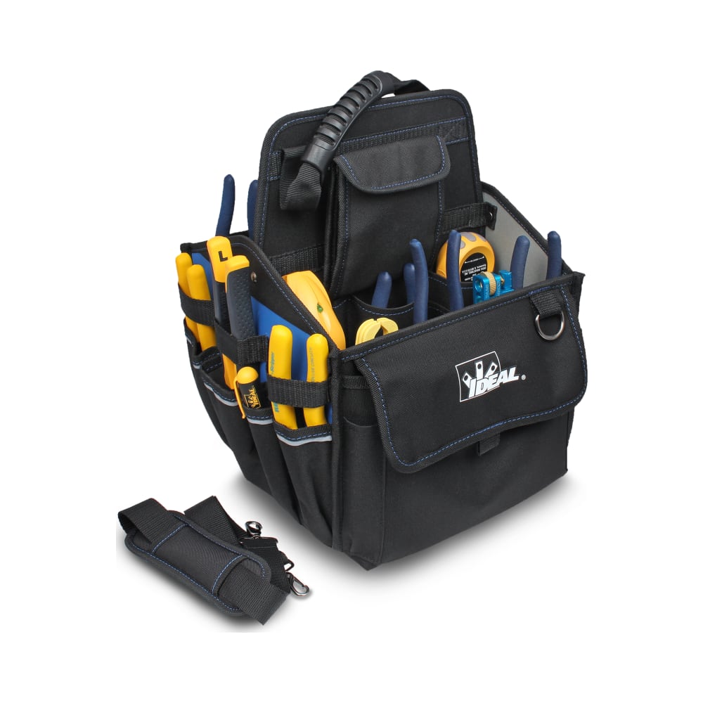 The IDEAL® Pro Series Premium Tool Carriers feature a sturdy and lightweight design for organizing and transporting tools. Multiple internal and external pockets allow you flexibility in storing what you need for every job while premium features keep your space clean and visible.