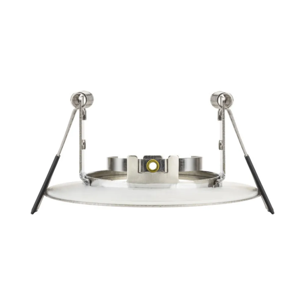 Traditional fire-rated downlights use a metal canister, which can trap heat and reduce LED efficiency. The Evofire’s canless design with an intumescent strip allows better airflow, helping lamps run cooler by up to 10°C, reducing energy waste and extending LED lifespan. This shallow-depth design also makes installation easier, even when ceiling space is obstructed by pipes or cables.