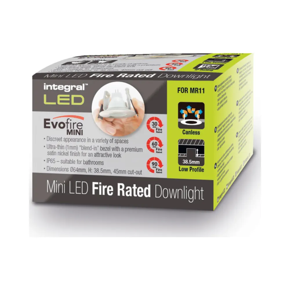 Integral LED Evofire Mini Fire Rated Downlight – MR11 12V GU4/MR11 240V GU10 – Satin Nickel