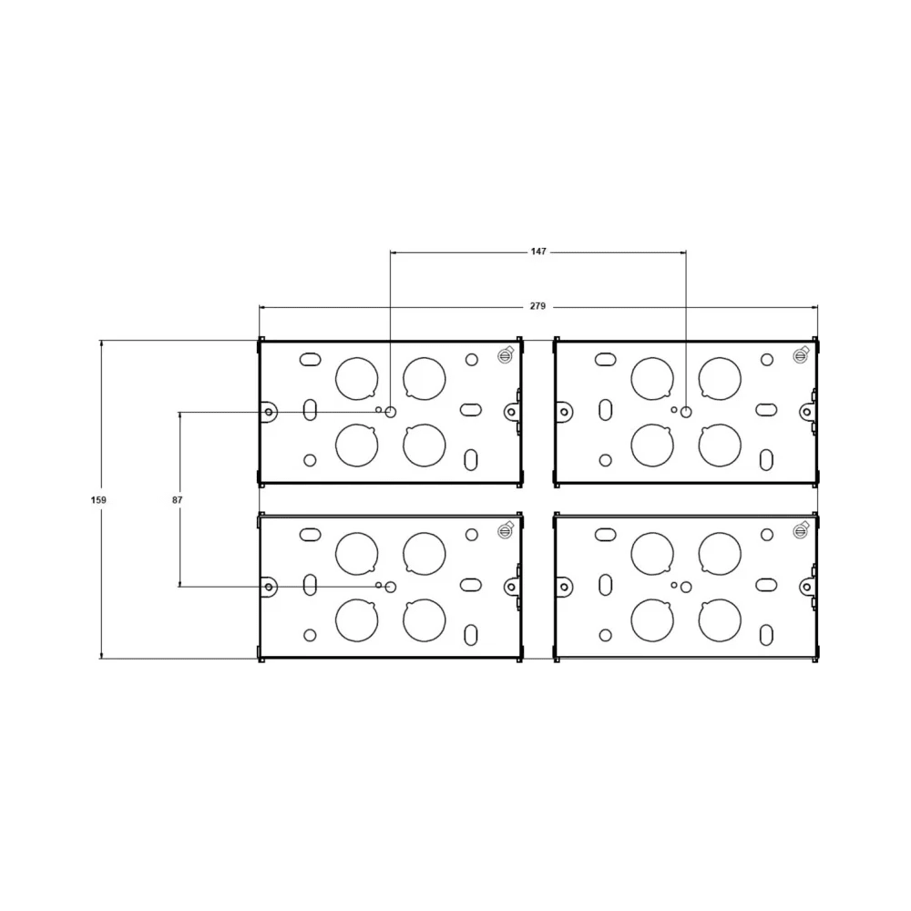 - 4 x 2G 47mm depth boxes on a rear back plate