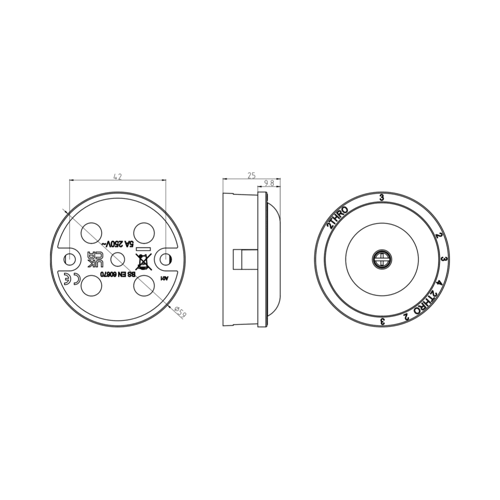 | DIMENSIONS | Diameter – 59 mm Projection – 25 mm |