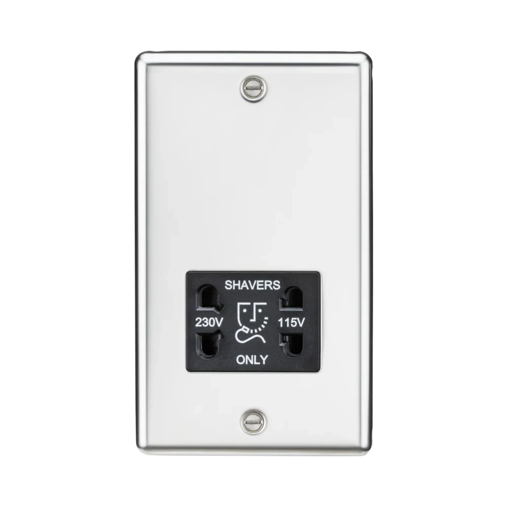 Rounded Edge 115V/230V Dual Voltage Shaver Socket – Polished Chrome with Black Insert