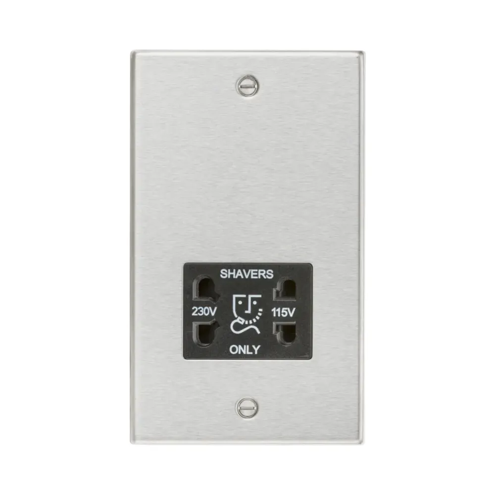 Knightsbridge CS89BC Square Edge 115V/230V Dual Voltage Shaver Socket – Brushed Chrome with Black Insert