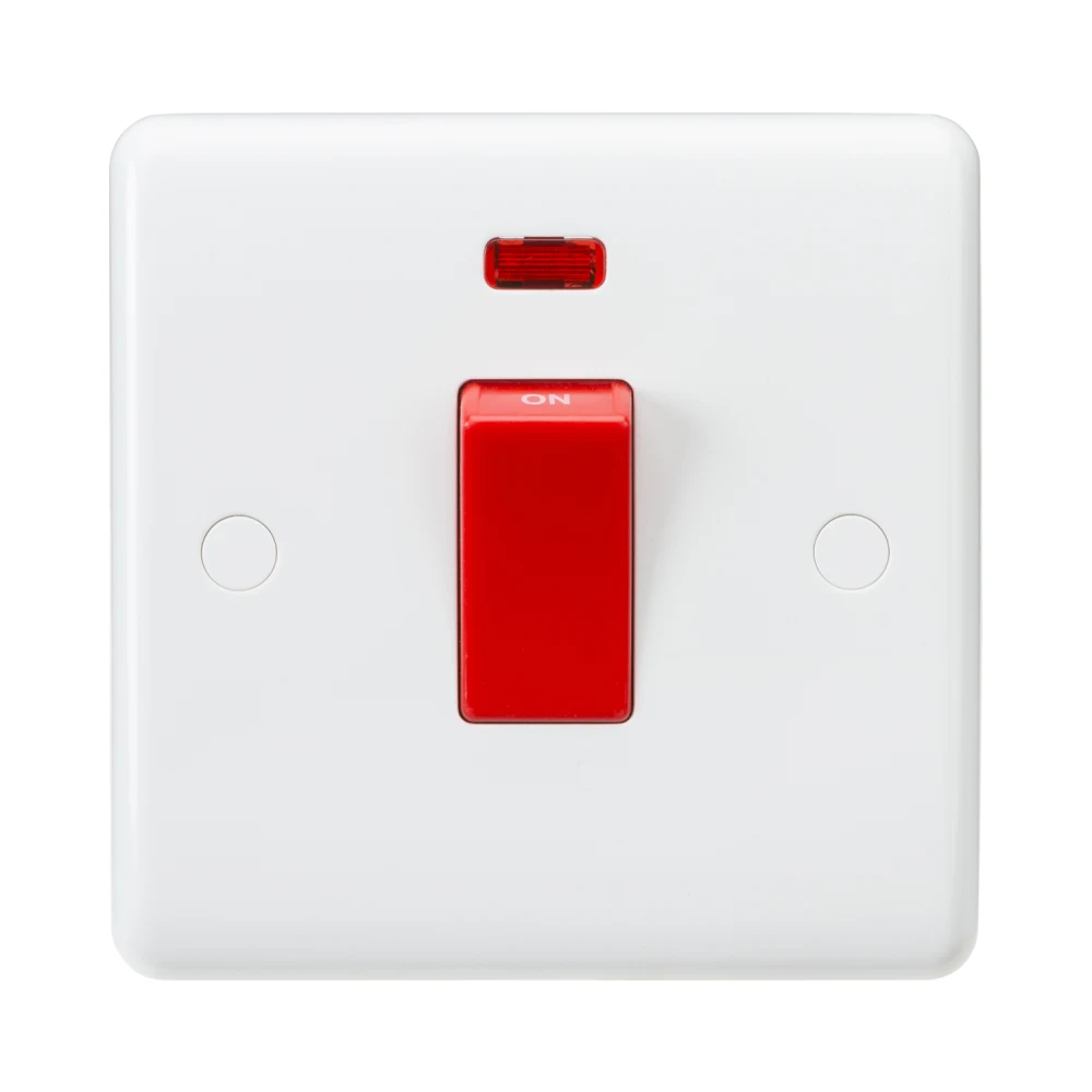 The Knightsbridge 45A DP Red Rocker Switch Neon is designed for safe isolation of high current appliances such as cookers and ovens in domestic and commercial installations.