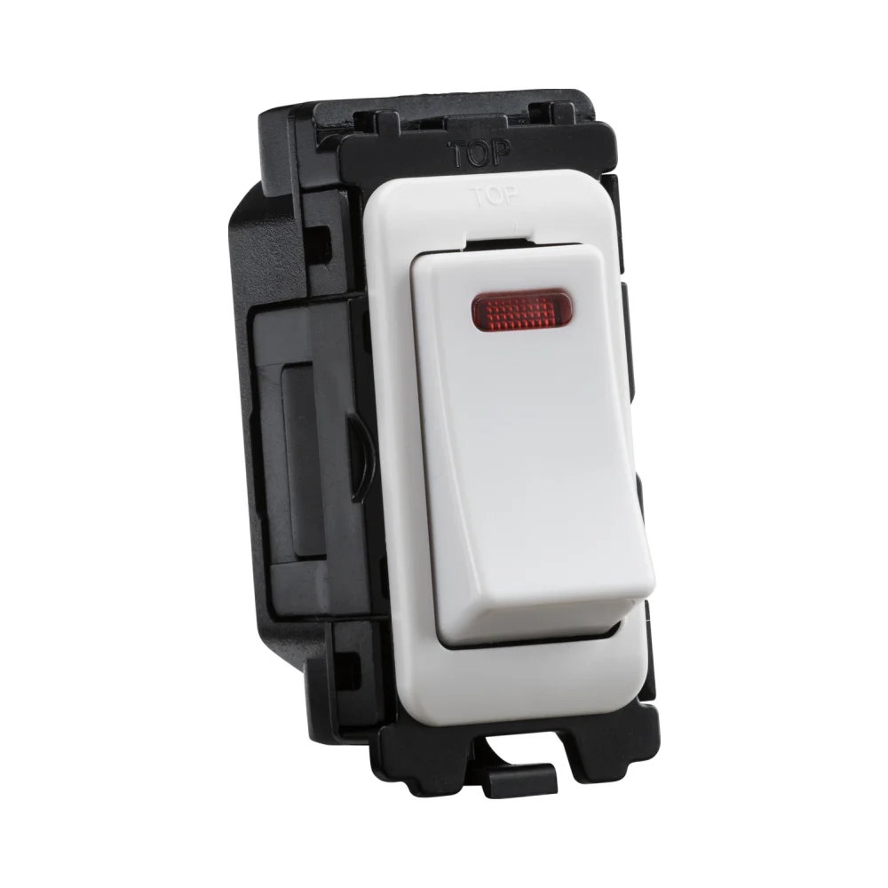 The Knightsbridge CUGM6N 20A 1 Way DP Grid Switch With Neon is engineered for use within Knightsbridge grid systems, delivering dependable circuit control in both domestic and commercial electrical installations.