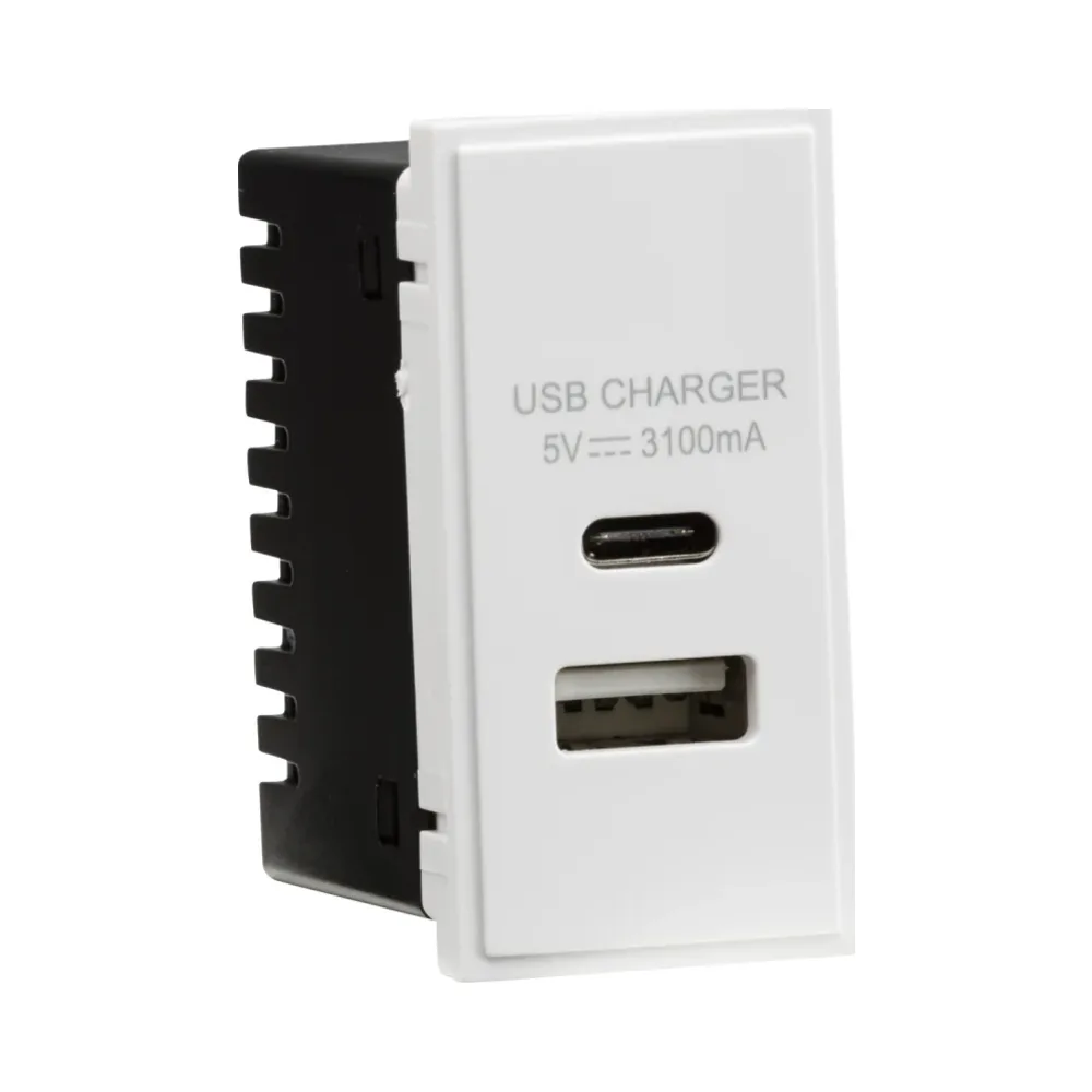 Knightsbridge Dual USB Charger (3.1A) Module 25 x 50mm – White