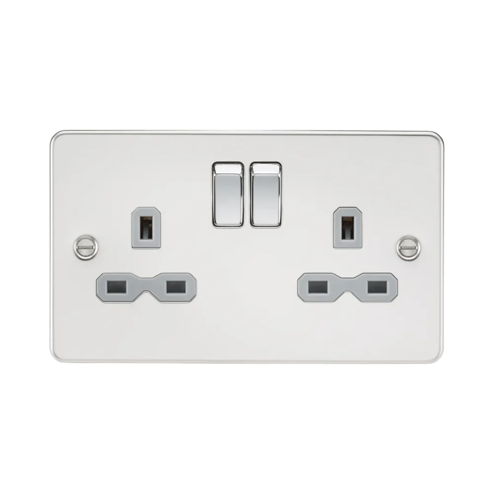 Knightsbridge Flat Plate 13A 2G DP Switched Socket – Polished Chrome with Grey Insert