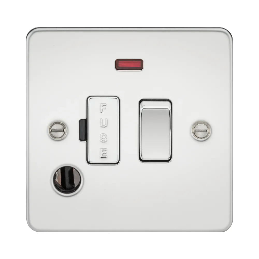Knightsbridge Flat Plate 13A Switched Fused Spur Unit with Neon and Flex Outlet – Polished Chrome
