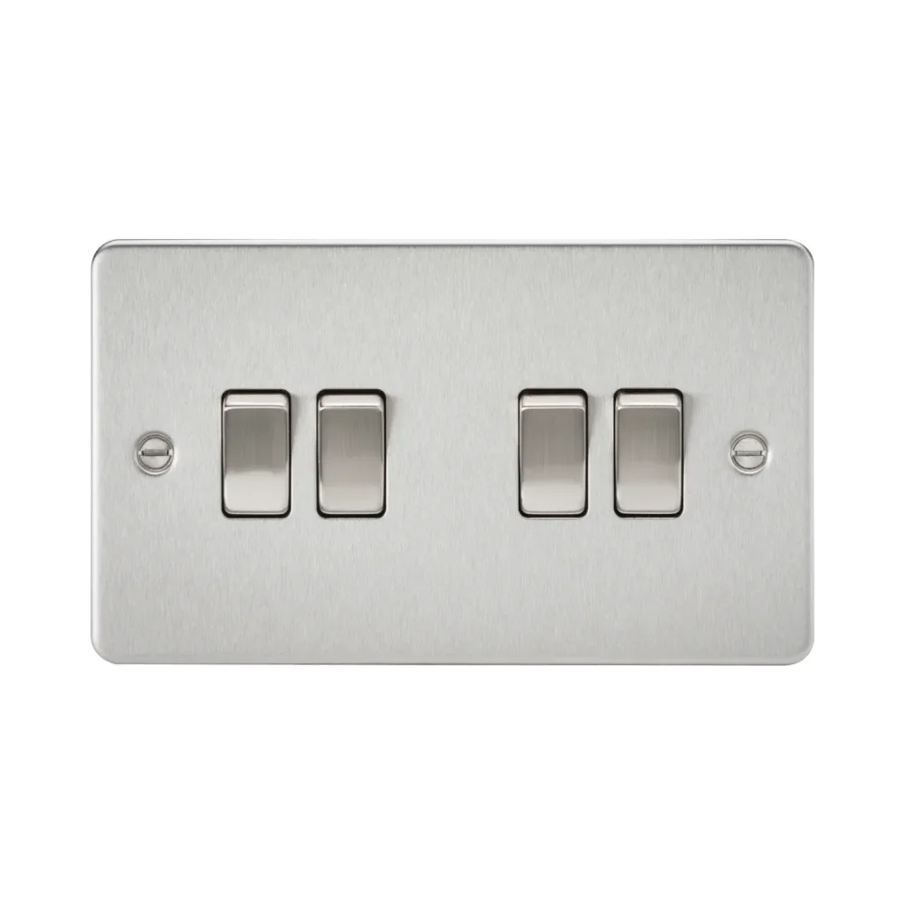 Flat Plate Brushed Chrome 4 Gang 2 Way Switch