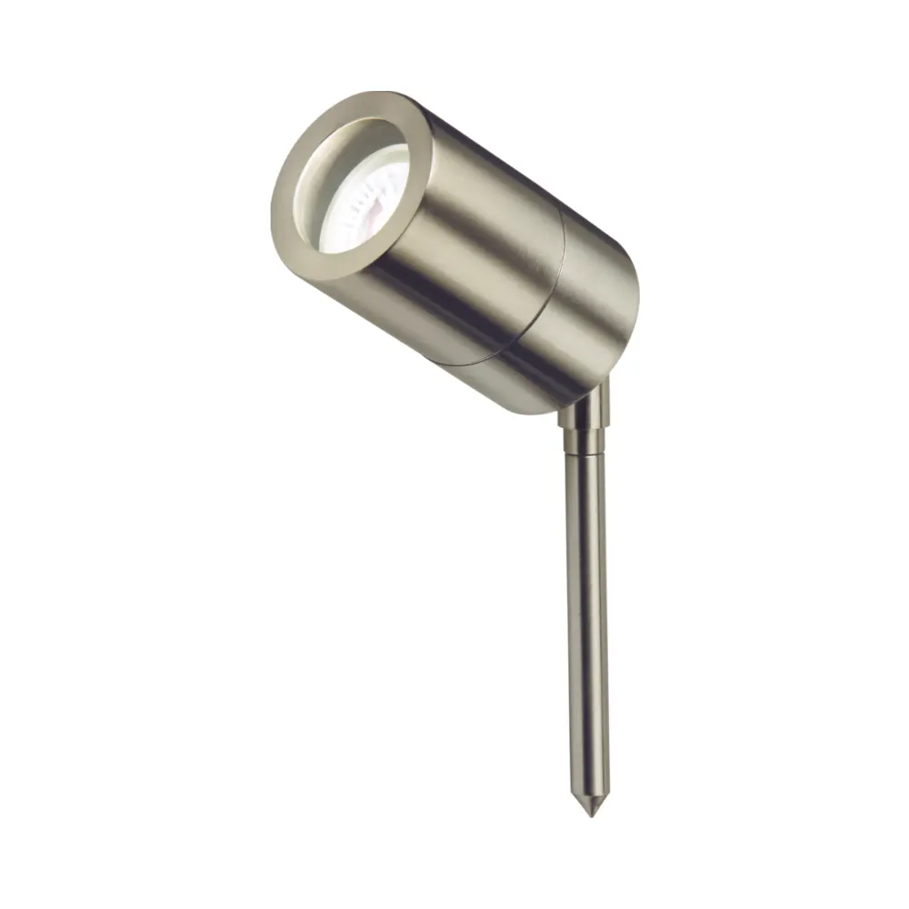 Knightsbridge GU10SPIKEL IP65 GU10 Garden Spike Spotlight – a lightweight, weatherproof spotlight made from 304 stainless steel. Ideal for gardens and pathways, compatible with GU10 LED lamps.