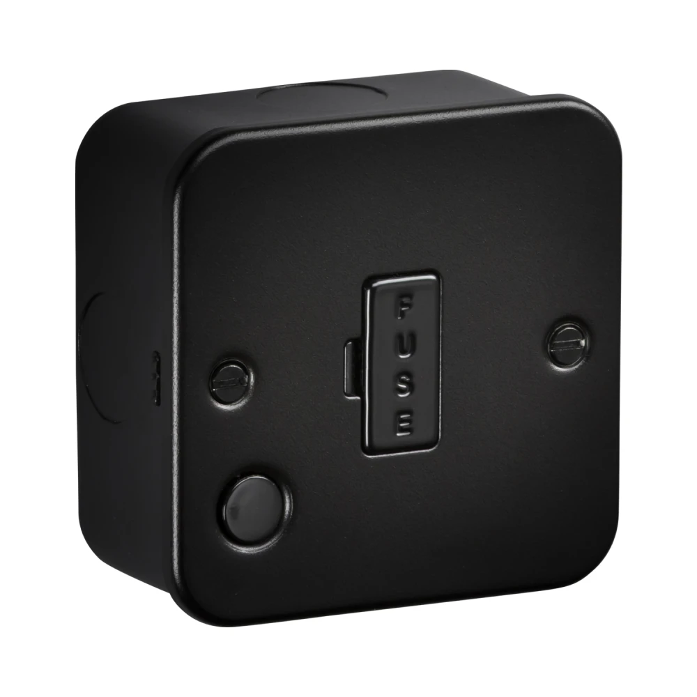 Durable Black Metal Clad Unswitched Fused Spur with Flex Outlet for Professional Installations