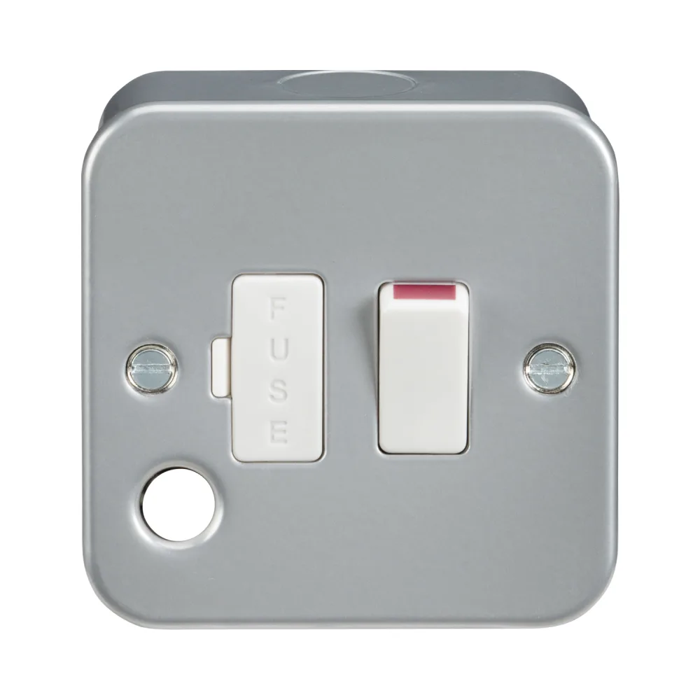 Manufactured to relevant British Standards, the Knightsbridge Grey Metal Clad Spur Flex Outlet provides a professional-grade solution with a clean grey appearance suitable for modern interiors.