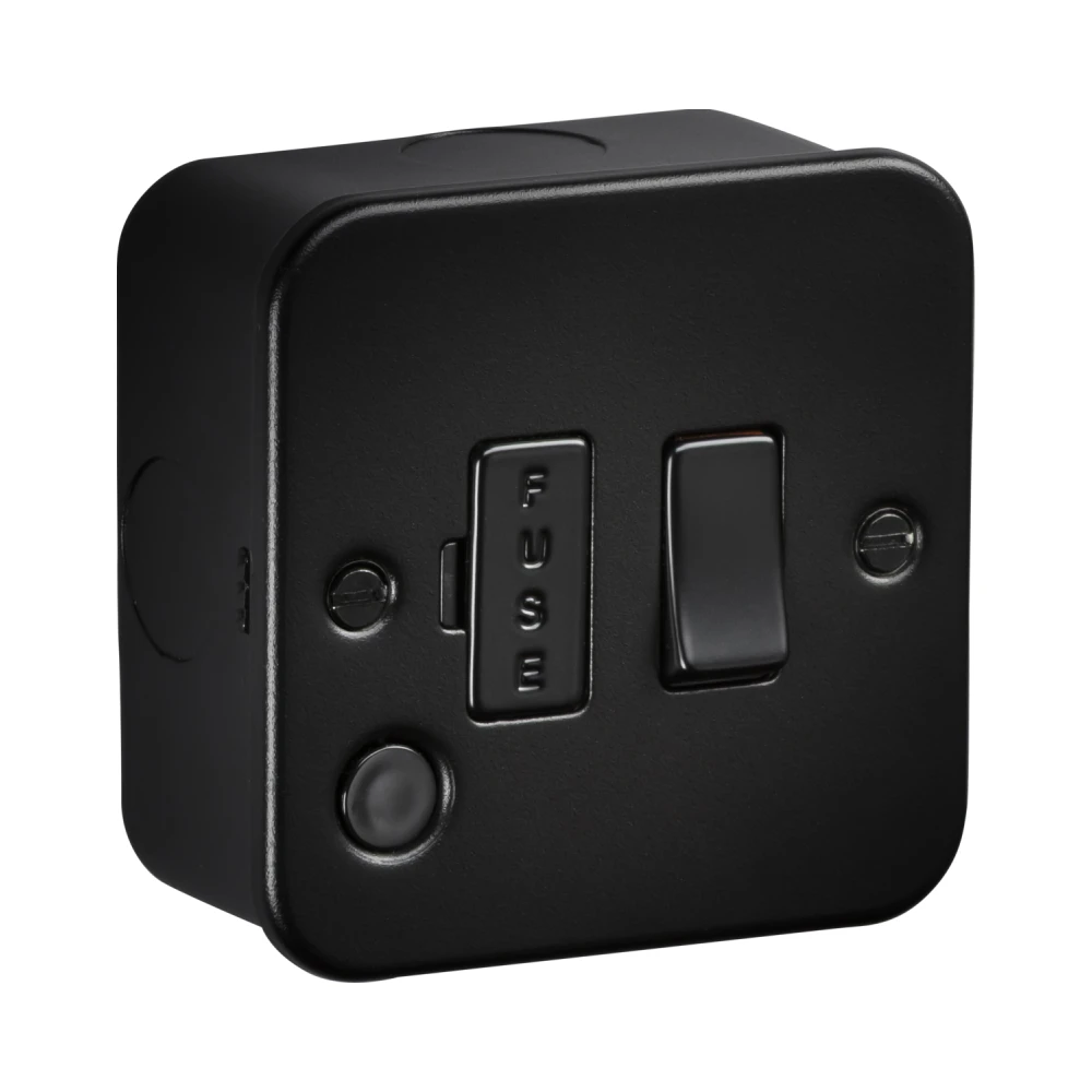 Durable Black Metal Clad Switched Fused Spur with Flex Outlet for Professional Installations