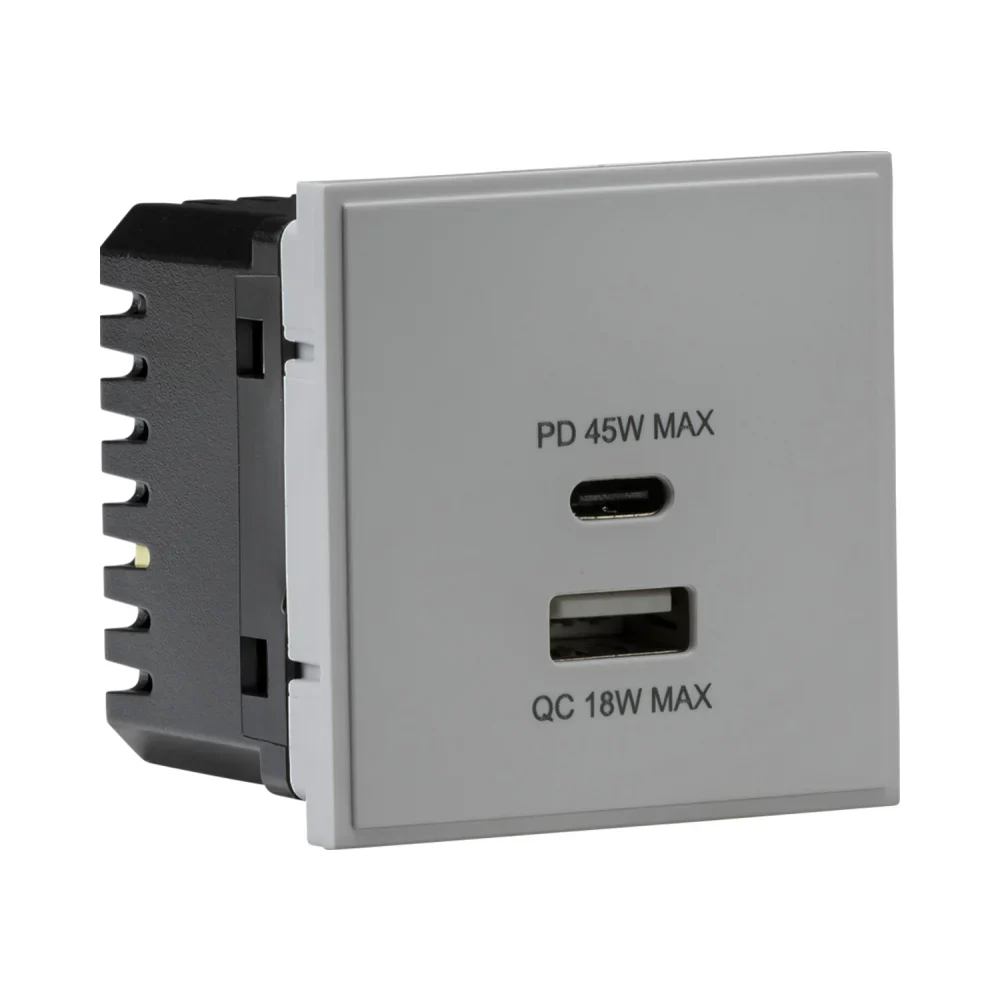 The Knightsbridge NETUSBPDGY Dual USB Charger A+C is a high-performance charging solution, perfect for modern homes, offices, and commercial environments. Designed for use with euro-module faceplates, this 50 x 50mm module features USB-A (18W Quick Charge) and USB-C (45W USB-PD) ports, delivering fast and efficient charging for smartphones, tablets, and laptops.