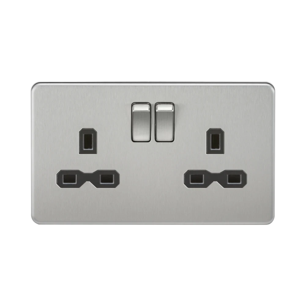 Knightsbridge Screwless 13A 2G DP Switched Socket – Brushed Chrome with Black Insert