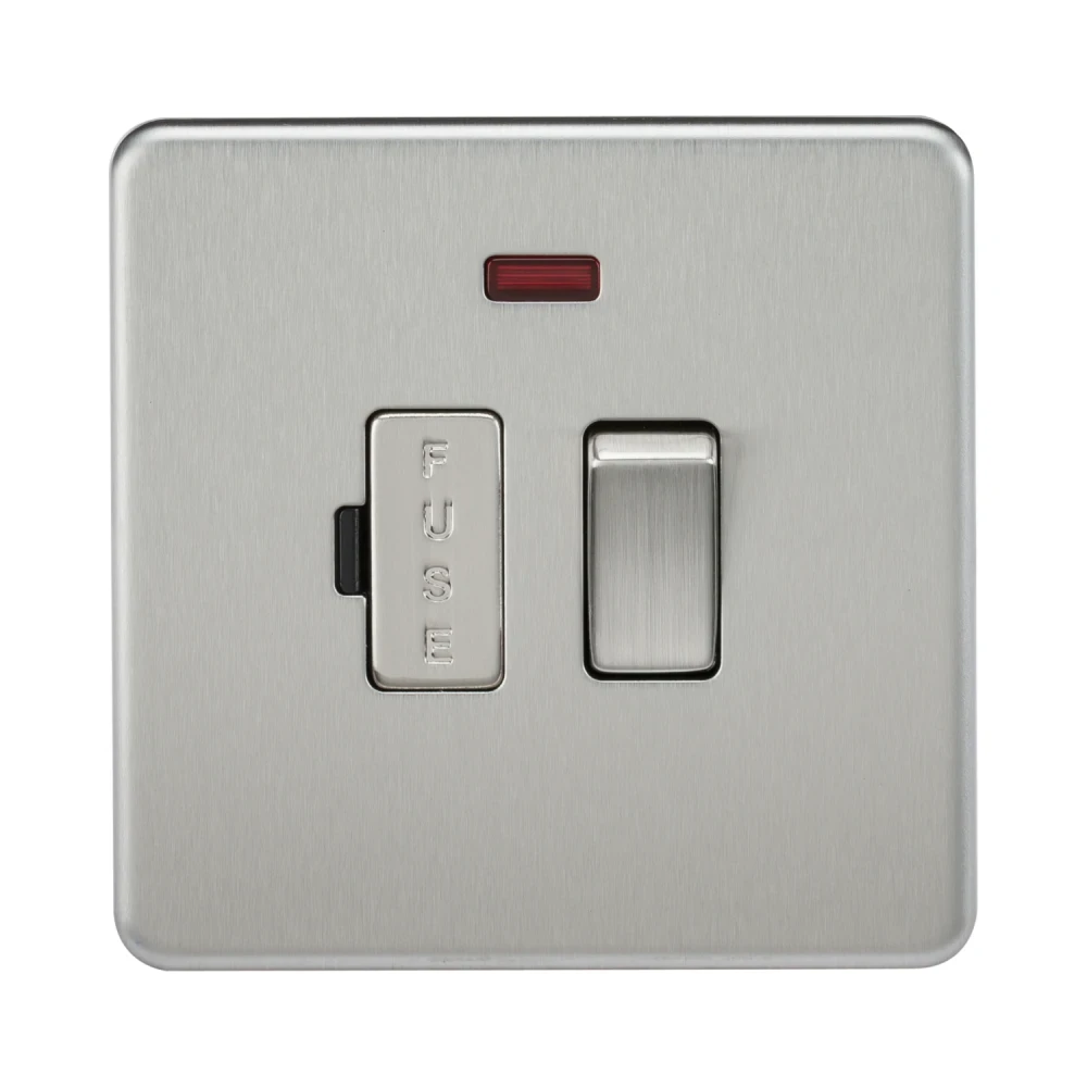 Knightsbridge Screwless 13A Switched Fused Spur Unit with Neon – Brushed Chrome