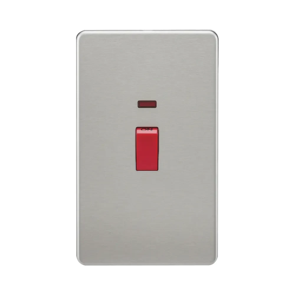 Knightsbridge Screwless 45A 2G DP Switch with Neon – Brushed Chrome