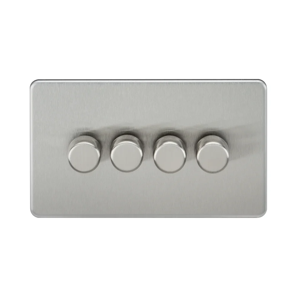 Knightsbridge Screwless 4G 2-way 10-200W (5-150W LED) Trailing Edge Dimmer – Brushed Chrome