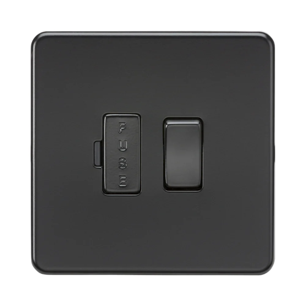 This matt black screwless fused spur unit is designed for controlling appliances such as: