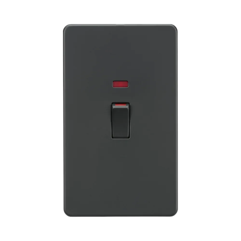 Enhance your interior with the Knightsbridge SF82MNAT Anthracite 45A DP Switch with Neon (2G size). Designed to meet both style and performance needs, this anthracite 13A socket features dual pole switching and twin earth terminals, offering a sleek, secure solution for domestic or commercial wiring projects.