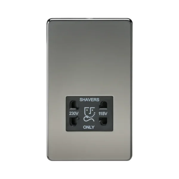 Screwless 115V/230V Dual Voltage Shaver Socket – Black Nickel with Black Insert