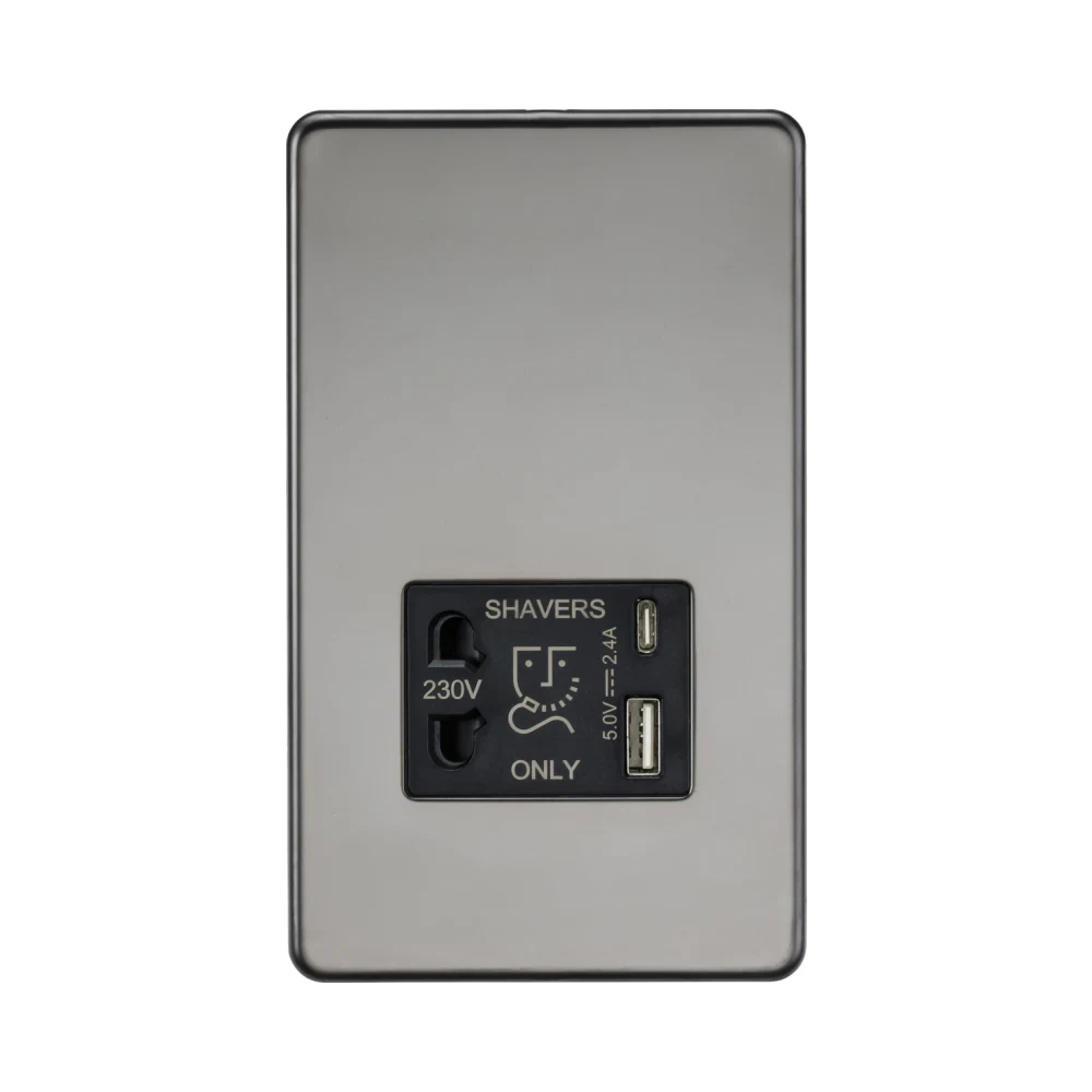 230V Shaver Socket with Dual USB A+C Charger – Black Nickel / Black Insert