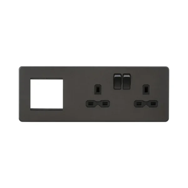 Knightsbridge SFR192RSB 13A 2G DP Socket + 2G Modular Combination Plate – Smoked Bronze with Black Insert