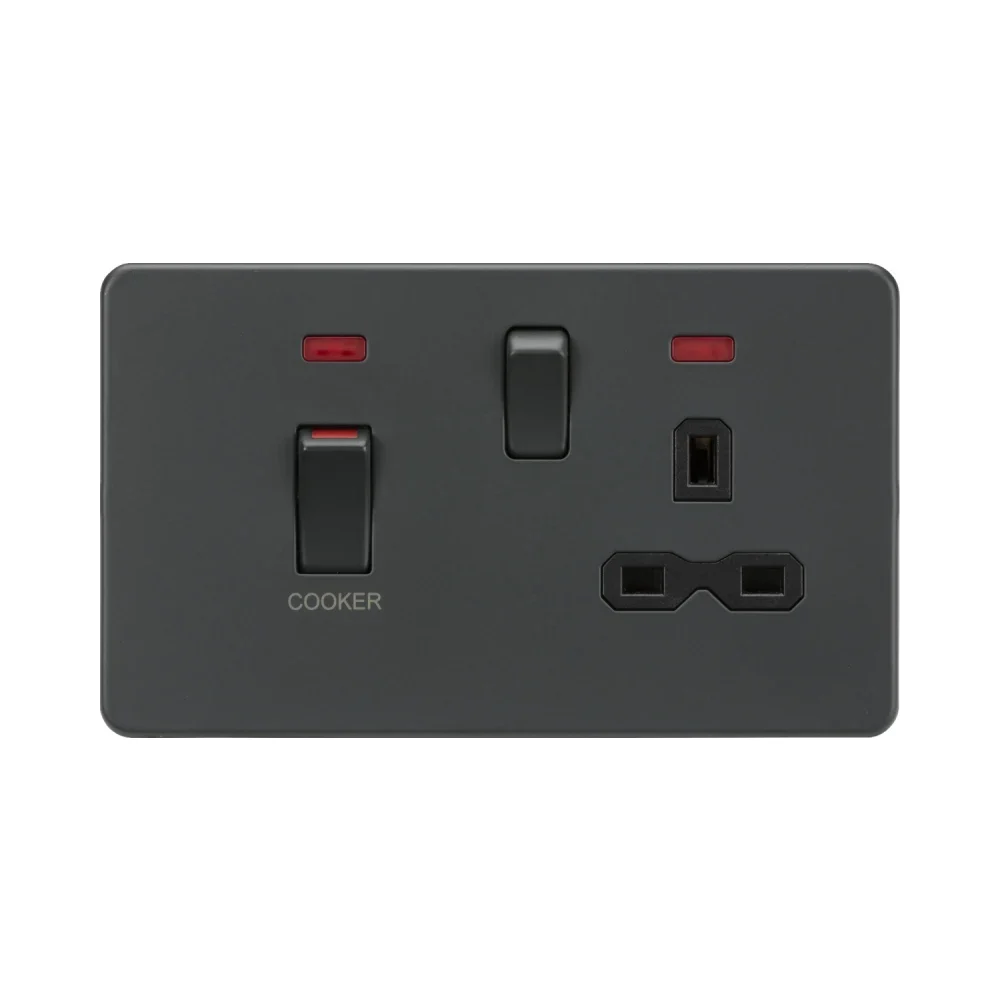 Knightsbridge SFR83MNAT 45A DP Switch & 13A Socket with Neons – Anthracite
