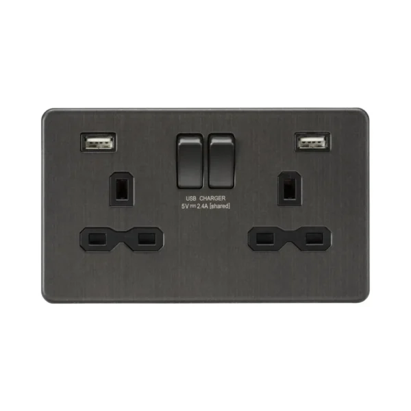 Knightsbridge SFR9224SB 13A 2G SP Switched Socket with Dual USB – Smoked Bronze with Black Insert