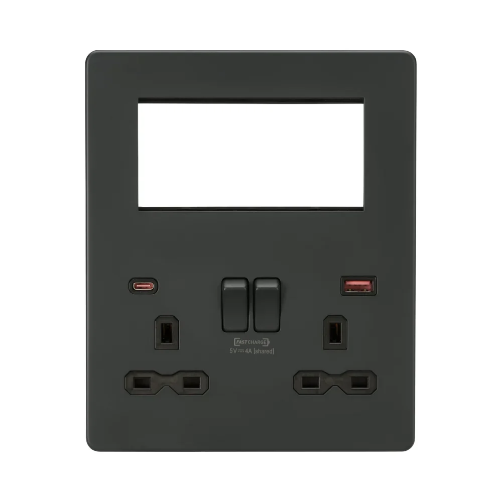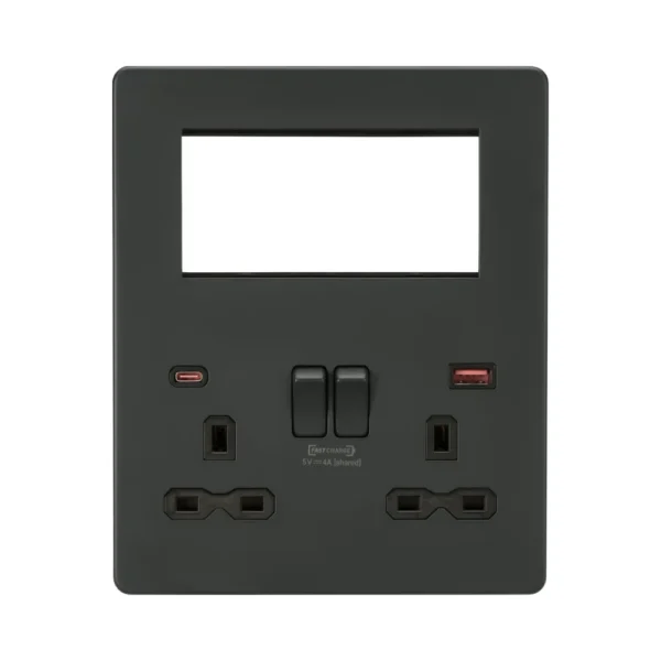 SFR994AT – Anthracite Small Multimedia Combo Plate + Dual USB A+C 12V DC 1.5A (Max. 18W) – Anthracite w/Black Insert