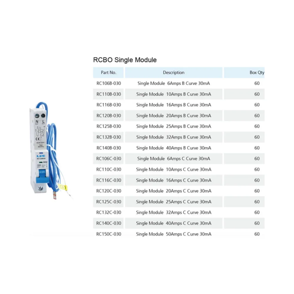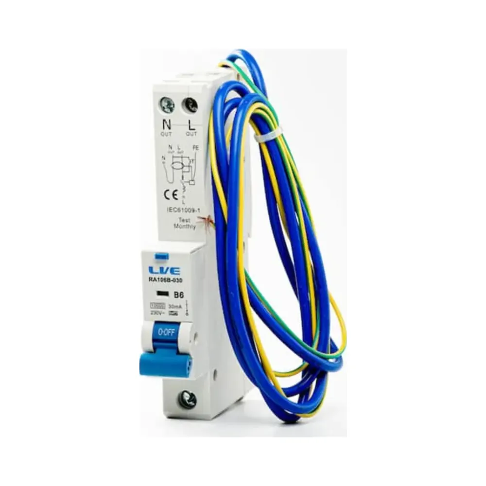 RCBO (Residual Current Circuit Breakers with Overcurrent Protection) devices are a combination of an RCD (Residual Current Device) and MCB (Miniature Circuit Breaker) in one.