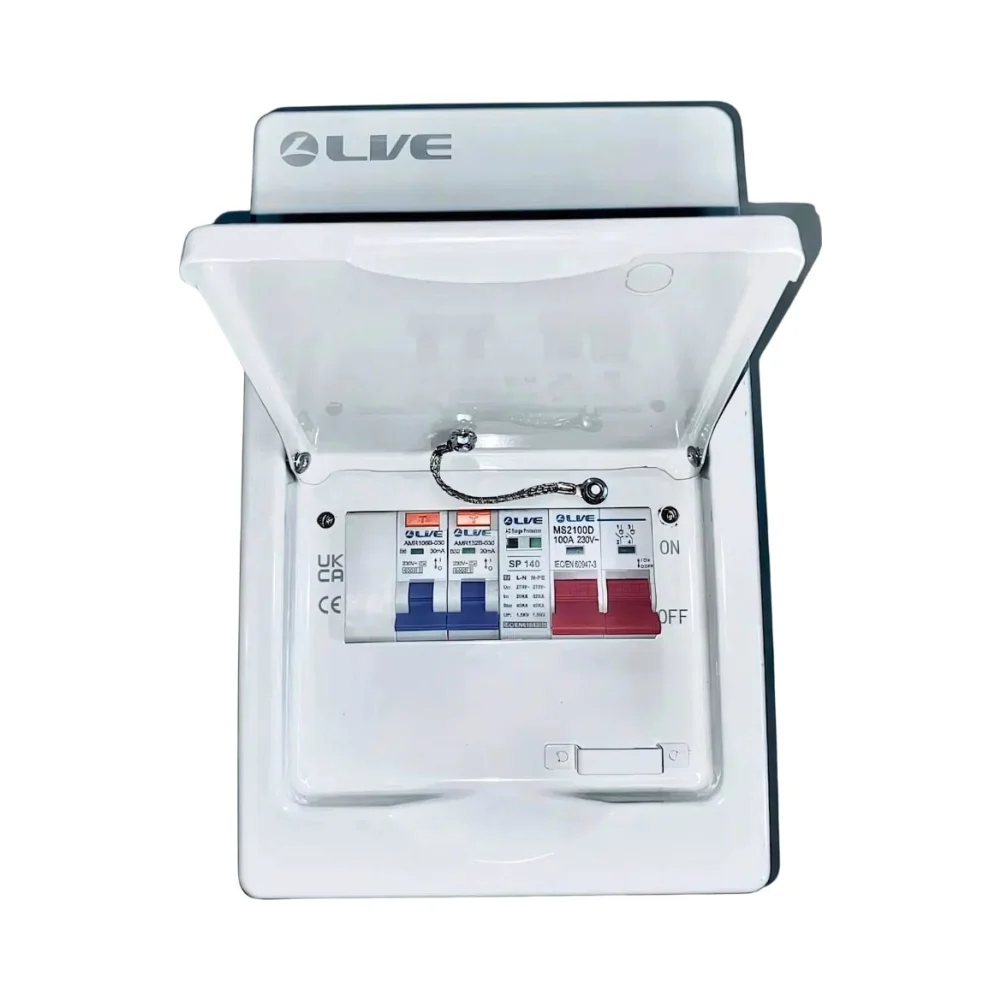 - Main Switch: Equipped with a 100A DP Main Switch for system isolation.