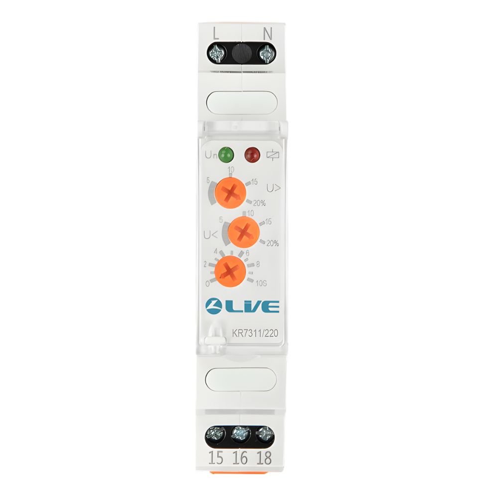 The Live Electrical KR7311/220 Voltage Protection Relay is designed to safeguard electrical installations from voltage fluctuations by automatically disconnecting the supply when unsafe conditions occur. Ideal for residential and commercial applications, this relay protects sensitive equipment from damage caused by over-voltage and under-voltage events.