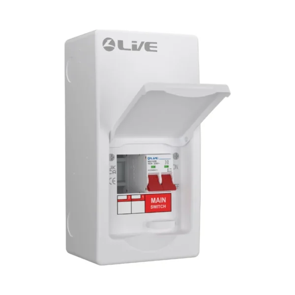 The Live Electrical LSMC04/100 100A Main Switch 2 Way Consumer Unit is a durable and secure choice for residential and commercial installations.