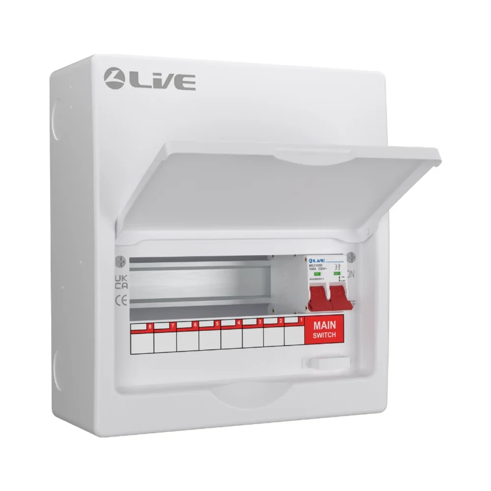 The Live Electrical LSMC10/100 100A Main Switch 8 Way Consumer Unit is a durable and secure choice for residential and commercial installations.