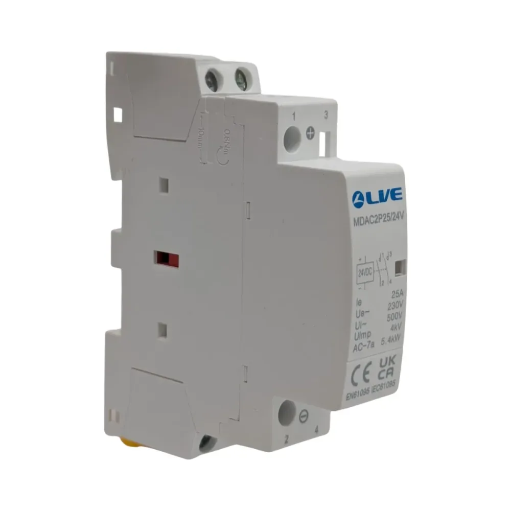 The 2 Pole 25A 2NO AC Contactor/24V DC Coil is engineered to deliver efficient and quiet operation for various electrical setups. Its compact modular design is perfect for housing within consumer units or enclosures, offering elegant aesthetics and superior performance.