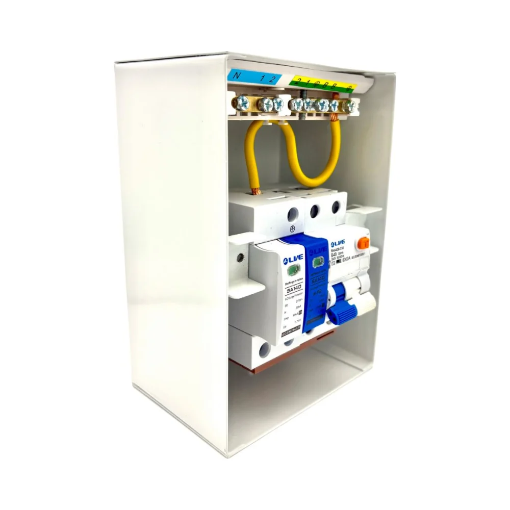 Need IP65 protection? Go for the Live Electrical LEV432SP-BP. It’s the outdoor-ready version with the same 32A B Curve RCBO and SPD.