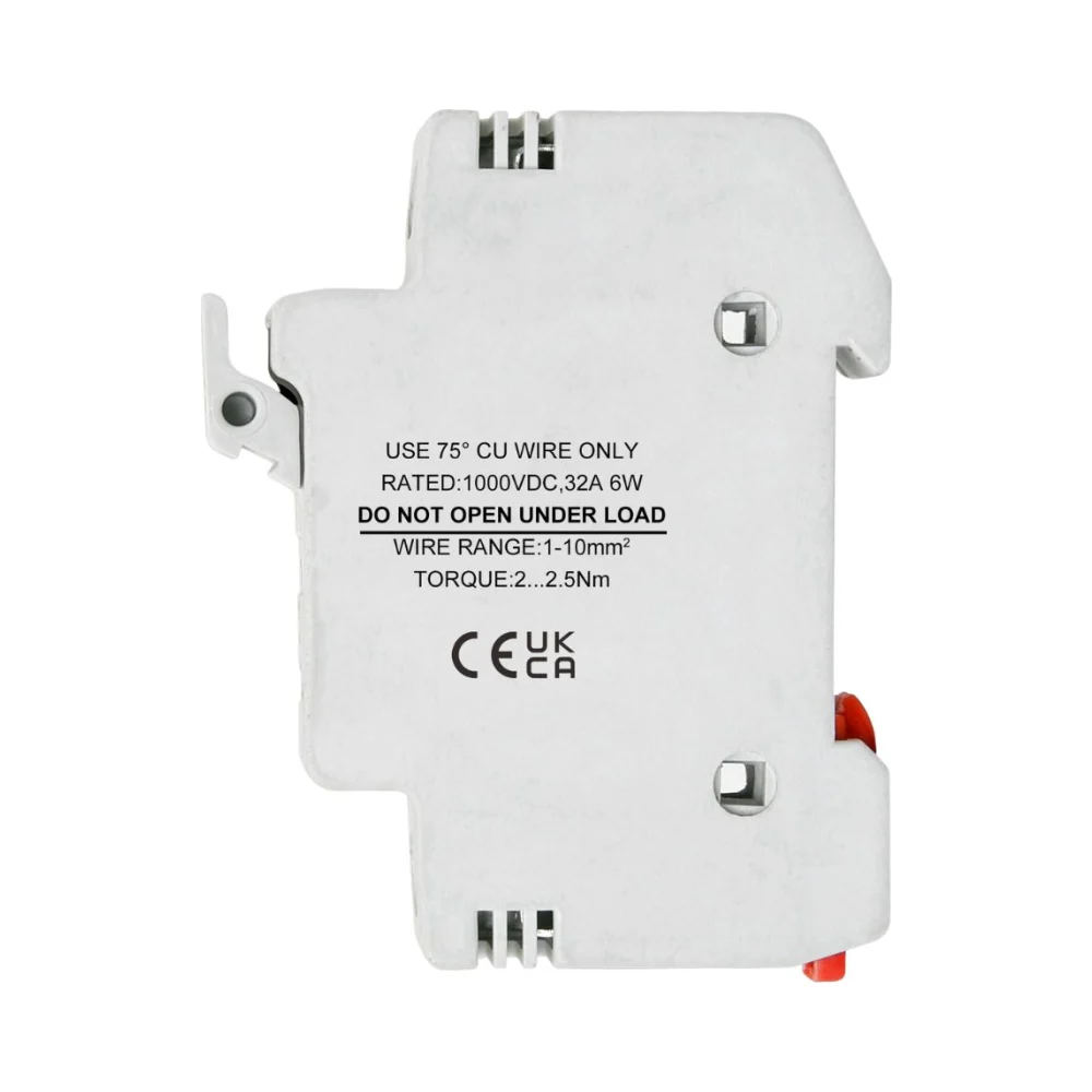 With integrated visual indication and full compliance with IEC/EN60269-3 and BS88-3, this fuse holder supports safe disconnection of incoming DC+ and DC– connections from your PV array. Designed for 10x38mm gPV fuses (not included), it’s a practical choice for installers looking for enhanced solar DC fuse safety and easy system monitoring.