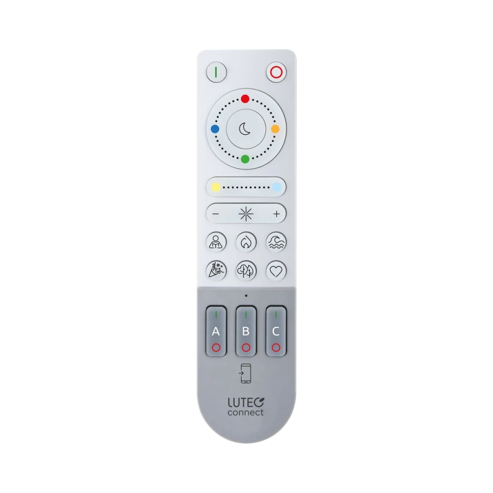 Take control of your lighting with the Lutec Remote Control (SKU: 9702315361). Now you can easily manage and adjust all your lights, from your bedroom to your garden, effortlessly.