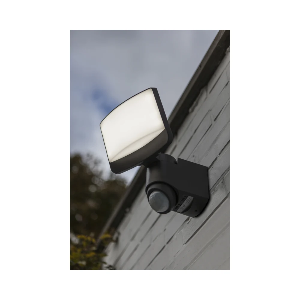 The Lutec Sunshine Security Light in Charcoal Grey offers robust and stylish outdoor lighting, delivering a bright 5000K cool white illumination. This security light features a rectangular head that can be directed over two axes, allowing customisable lighting for larger outdoor spaces like courtyards and driveways. Equipped with a highly effective PIR motion sensor, it detects movement up to 18 meters with a 180-degree detection angle, enhancing safety and visibility.