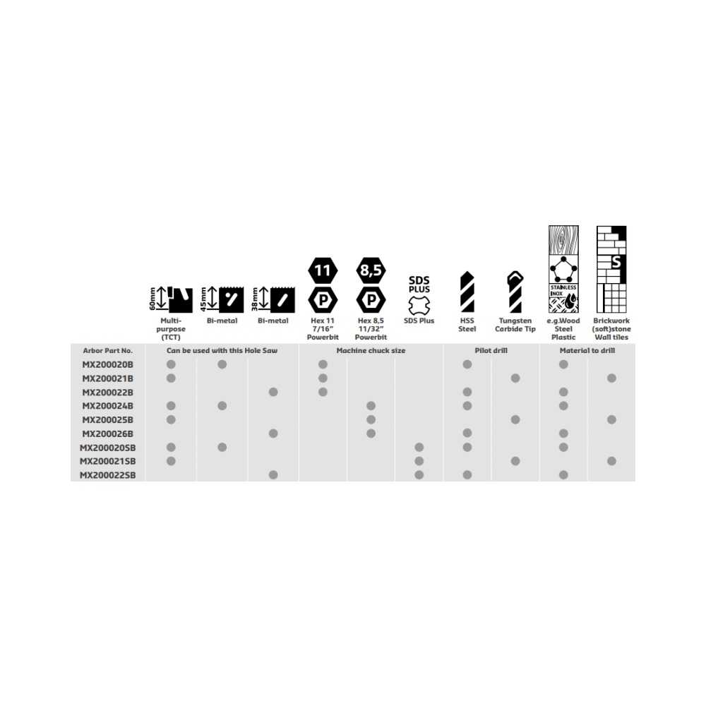 The MXqs arbors can be used on all drilling machines, in combination with all Hole Saws. Just choose the correct combination of arbor and pilot drill and start drilling!