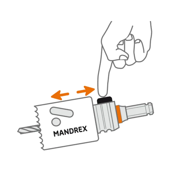 “Exchanging Hole Saws is a matter of pushing the button and sliding. With the MXqs arbors you only require one arbor for large and small Hole Saws. With our unique ONE CLICK arbor system it only takes seconds. Making use of the unique Mandrex MXqs arbor system brings you all its unique features with one simple CLICK. Just push the button and start saving time, money and frustration! To remove the Hole Saw to use another diameter, just push the button and exchange the Hole Saw. Slide on another Hole Saw and you are ready to go! Simple! You can now use the smaller Hole Saw to center the drill. It is easy to drill a hole with the desired diameter. (Extra adapter needed)