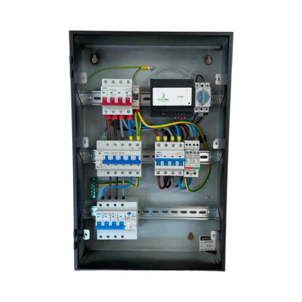 This three-phase EV connection centre includes an auto-reset isolator, a Type 2 Surge Protection Device (SPD), and a 63A TPN Type A RCBO. With these advanced features, it provides strong protection against electrical faults, overvoltages, and disruptions.