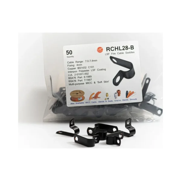 Ensure maximum cable safety with MICC Clips – RCHL30-BLK. Benefit from the mechanical strength and fire safety advantages of LSF mineral cable clips.