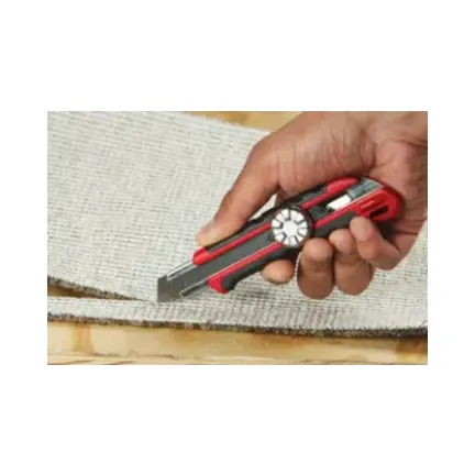 The Milwaukee 48221961 Snap Knife features an 18mm blade designed for durability and precision. Its metal lock mechanism ensures maximum durability and a longer lifetime. The knife includes a speed thread lock for quick and easy blade adjustments. The overmoulded handle provides a slip-resistant grip and is resistant to acetone. The iron carbide blade offers enhanced sharpness, a longer lifespan, and a clean cut finish.