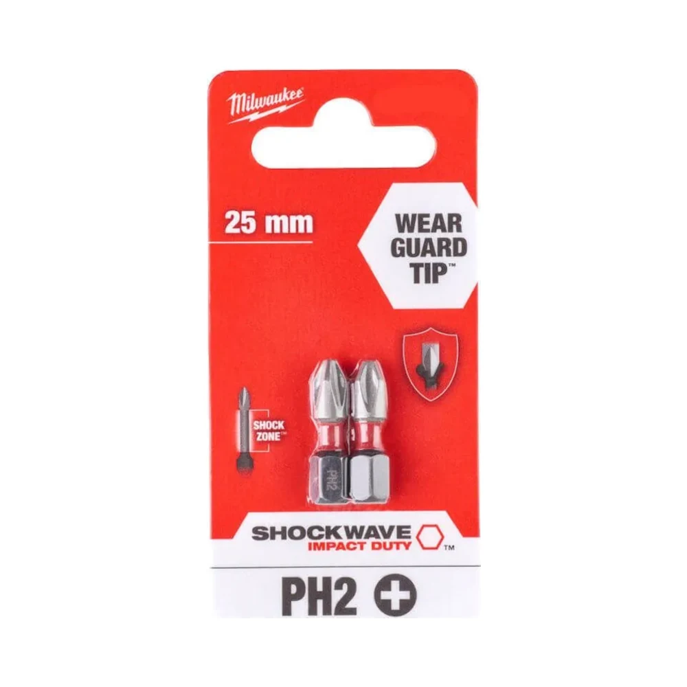 The Milwaukee Shockwave Screwdriver Bit Philips PH2 x 25mm Impact Duty – Pack of 2 delivers ultimate durability and exceptional performance in high-torque applications. First, it features proprietary steel construction and heat treatment for maximum strength, ensuring a secure fit and significantly reducing wear. Additionally, this bit excels when used with impact drivers, making it perfect for professionals and DIY enthusiasts. Moreover, it offers reliable and long-lasting performance for all your fastening needs. By choosing Milwaukee’s trusted quality and innovation, you make even your toughest jobs easier and more efficient.