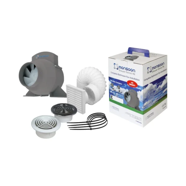 All-In-One Shower Extract Kit for Quiet, Efficient Bathroom Ventilation – 198m³/h